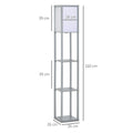 Illuminate your home the standing lamp, merging light, beauty, and storage elegantly and practically. Perfect for decor enthusiasts, this lamp offers three shelves for displays and a warm top light for a warm and inviting glow. Its sleek white shade complements any interior style, and the convenient foot switch ensures effortless operation. Crafted with a durable melamine coating, this lamp is a stylish and resilient addition to any living space, enhancing both ambiance and organization.