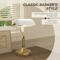Banker's Desk Lamp with Antique Bronze Tone Base, Table Lamp with White Glass Shade for Home Office, White