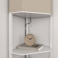 2-in-1 for the home: this shelf floor lamp, from . Combines three shelves and top light - in a triangle design to neatly slot into corners. The top light is easy to operate - pull the chain to turn on/off. Its fabric shade omits a soft glow for a welcoming atmosphere. Three shelves give you plenty of storage room. Now you just need to decide where to put it...