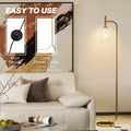 Floor Lamp for Living Room with Glass Lampshade, Modern Standing Lamp with Foot Switch for Bedroom, Bulb not Included, Gold Tone