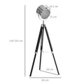 Industrial Style Adjustable Tripod Floor Lamp, Searchlight Lamp with Wooden Legs and Steel Lampshade, 110-155cm, Black