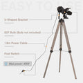 Industrial Style Adjustable Tripod Floor Lamp Vintage Spotlight Reading Lamp w/ Wood Metal Legs E27 Base For Living Room Bedroom, 100-140cm, Natural