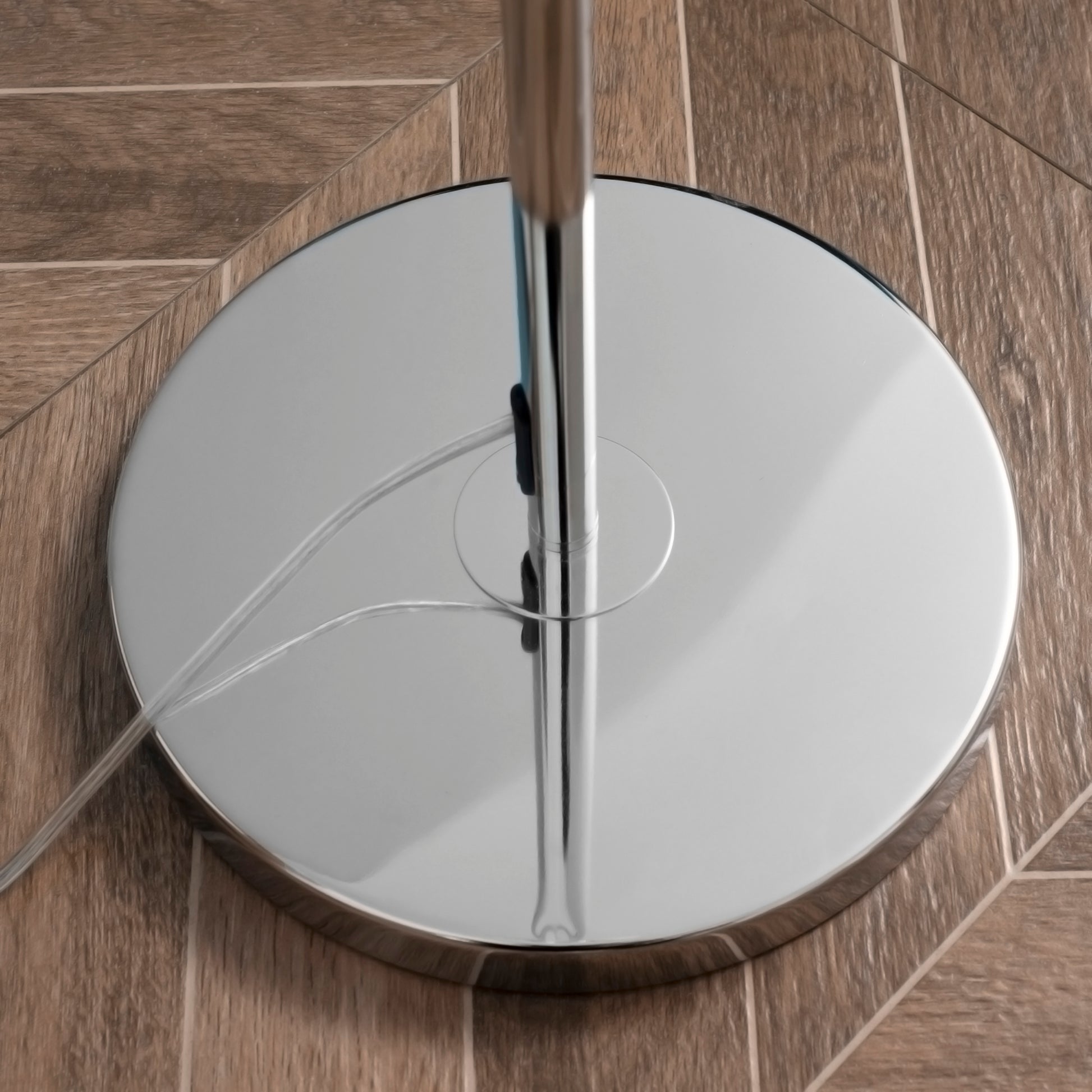 Light up in glitzy style this season - bring this floor light into your home/office. It features a crystallite beaded shade - clear in colour to allow the bulb to illuminate out gently - creating a soft glow which still keeps your area brightly lit. The frame is made from metal for strength, with a large round base so it stands balanced and steady; the 150cm height is tall, so it lights up a larger area. Finished with foot switch to turn on and off easily.