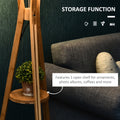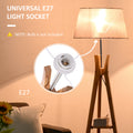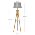 Natural Wood Tripod Floor Lamp Light E27 Base Bedroom Living Room Fabric Shade Storage Shelf Foot Switch, 156cm, Grey