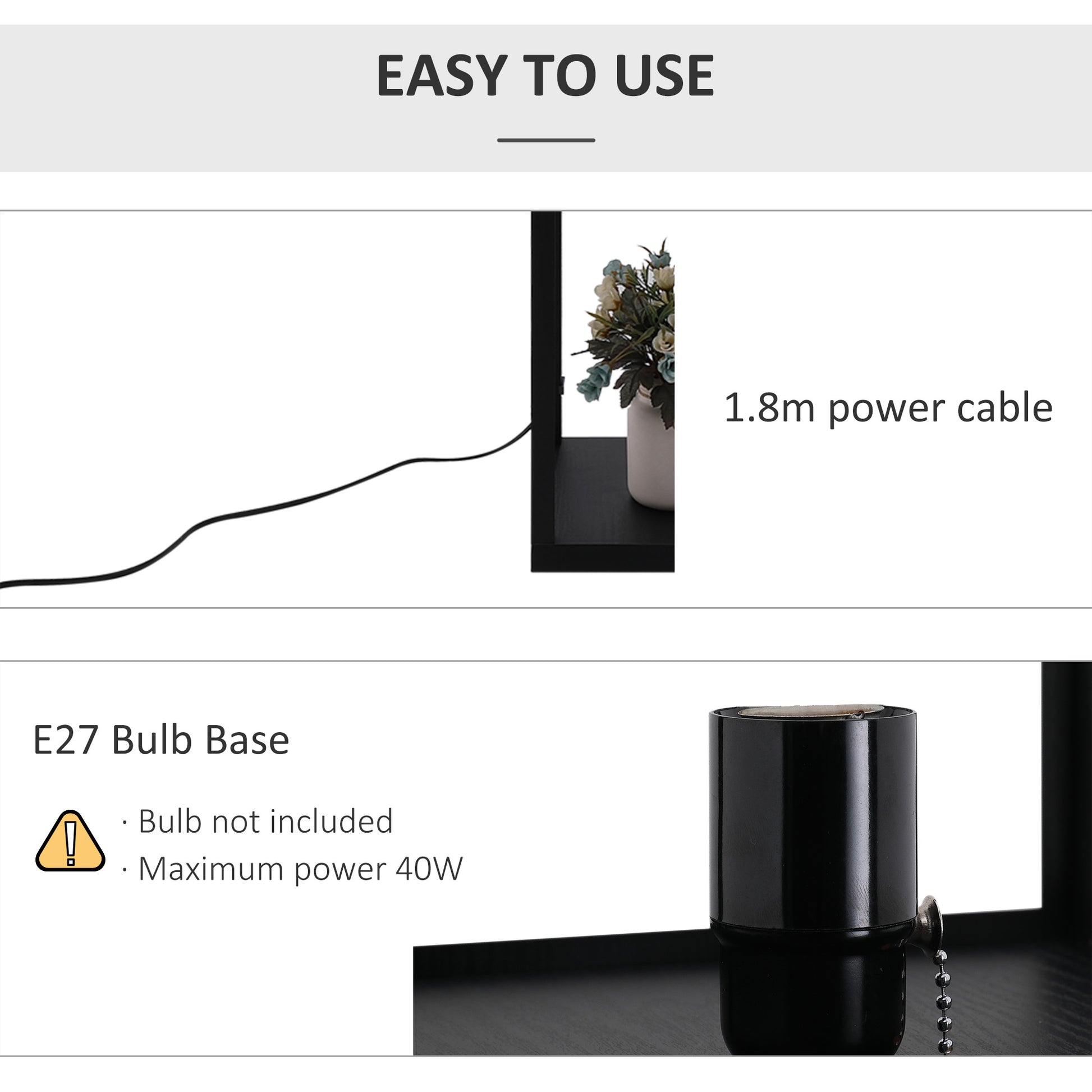 - Lamp cord measures 180cm for more convenient and easy-to-move