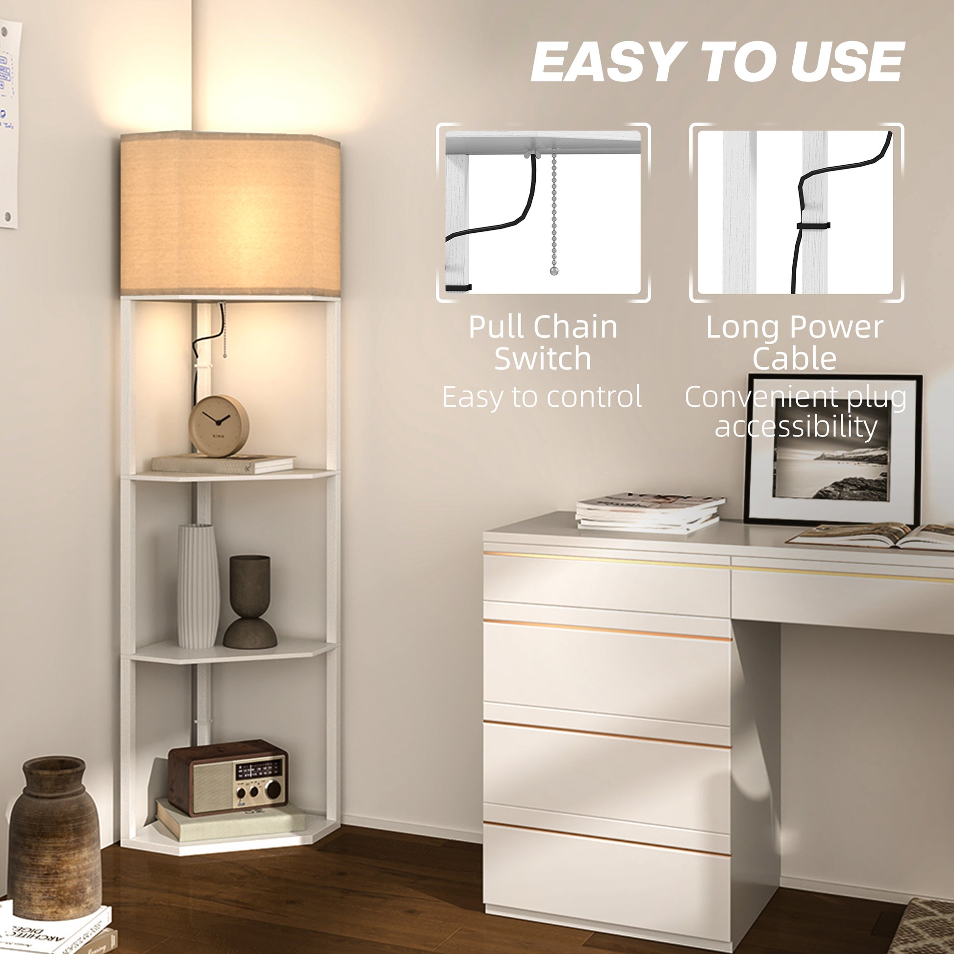 2-in-1 for the home: this shelf floor lamp, from . Combines three shelves and top light - in a triangle design to neatly slot into corners. The top light is easy to operate - pull the chain to turn on/off. Its fabric shade omits a soft glow for a welcoming atmosphere. Three shelves give you plenty of storage room. Now you just need to decide where to put it...
