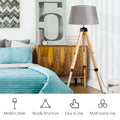 Tripod Floor Lamp Wooden Adjustable Modern Illumination Design E27 Bulb Compatible (Grey Shade) 99-143H