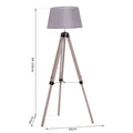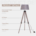 Tripod Floor Lamps for Living Room Bedroom, Modern Adjustable Standing Lamp with Wood Legs, Drum Fabric Shade, 99-143cm, Grey
